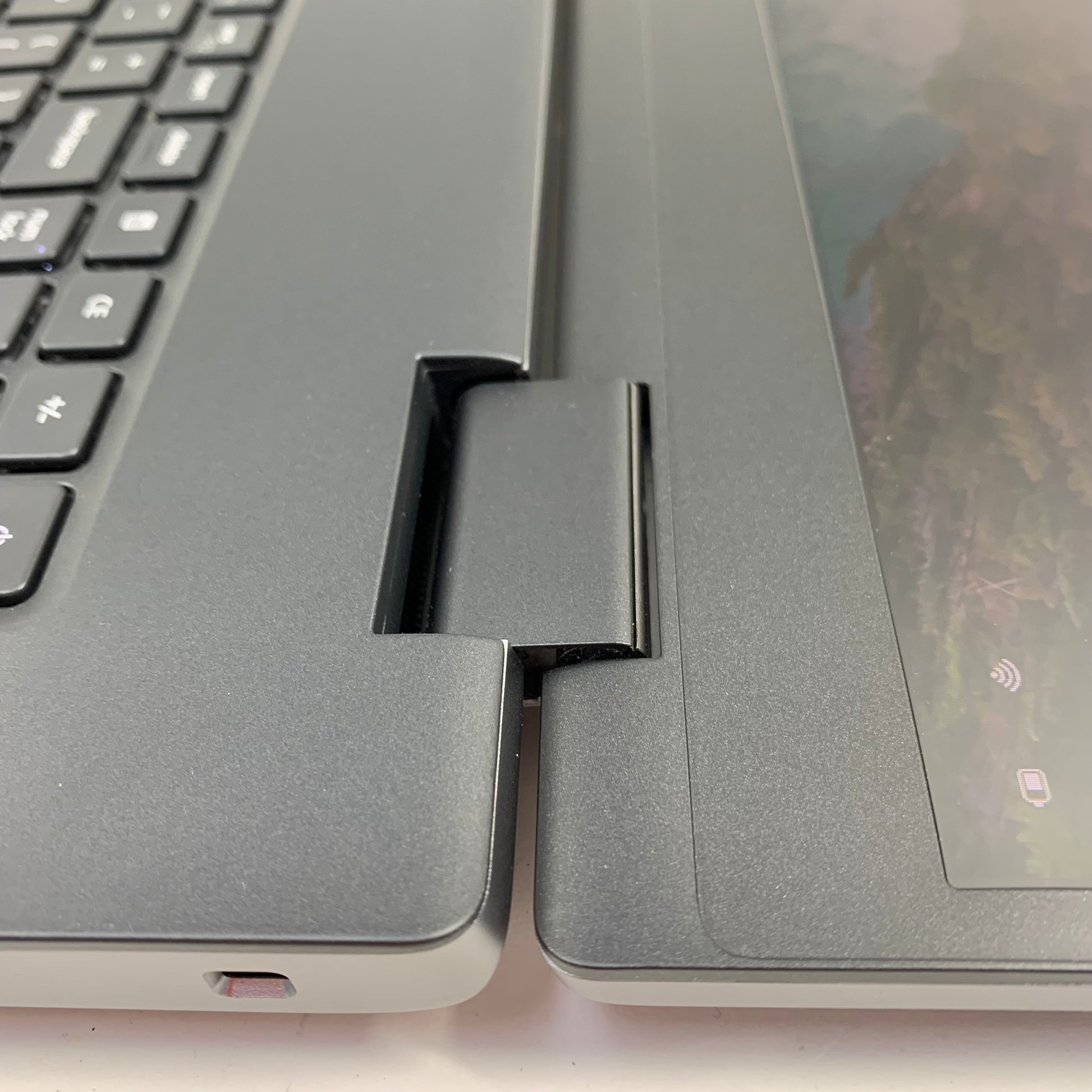 The top case is in fair condition due to scuffs, dents, scratches and wear. Some of these scratches are semi-deep and easily seen. The bottom is in good cosmetic condition with minimal wear. All four sides are in good cosmetic condition with minimal wear. All of the ports are in good condition and clean. The screen is in good condition with some minor wear and scuffs. The keyboard is in good condition with some minor wear and signs of use. The hinges are in good condition, sturdy and functioning properly. The bezel is in good cosmetic condition with little to no wear.