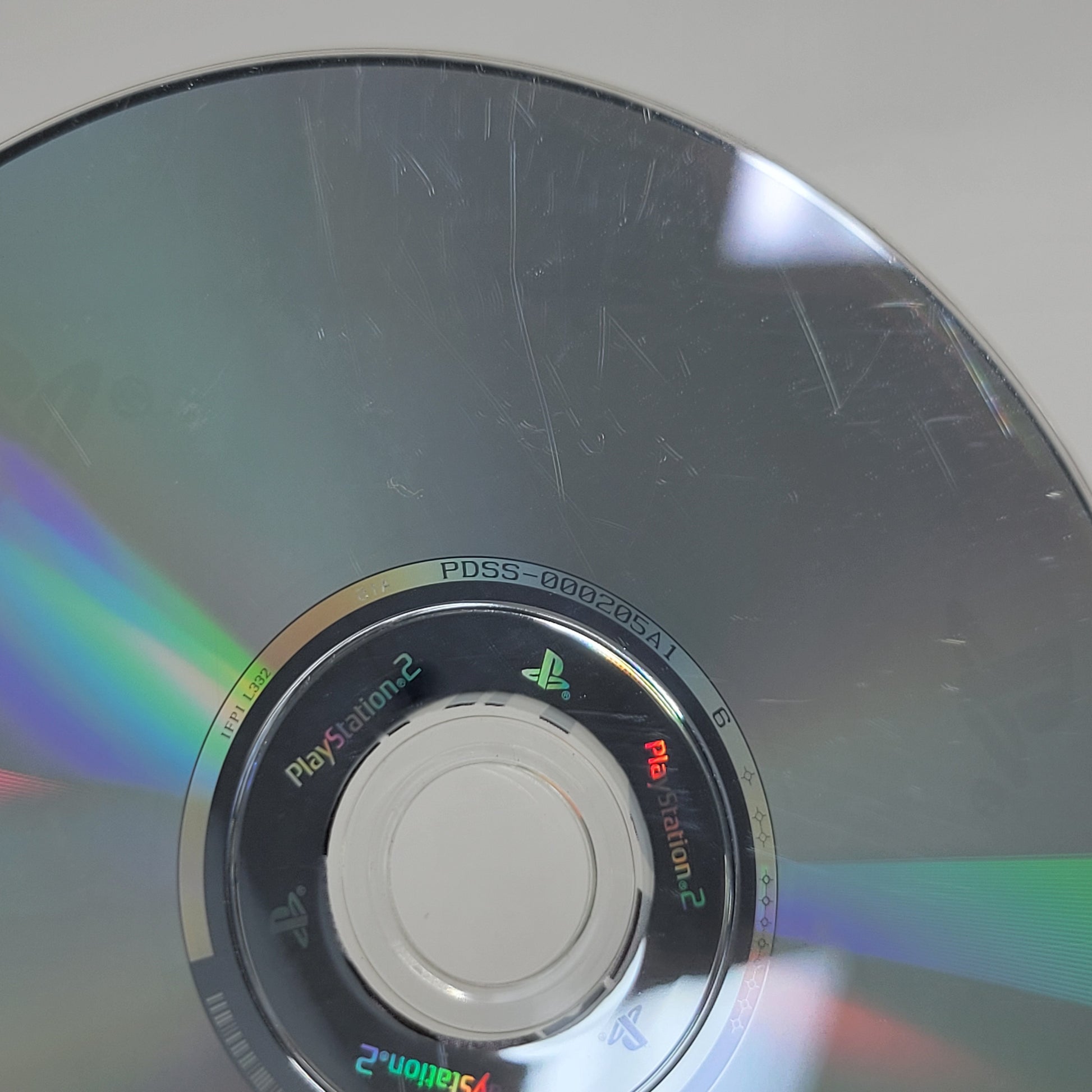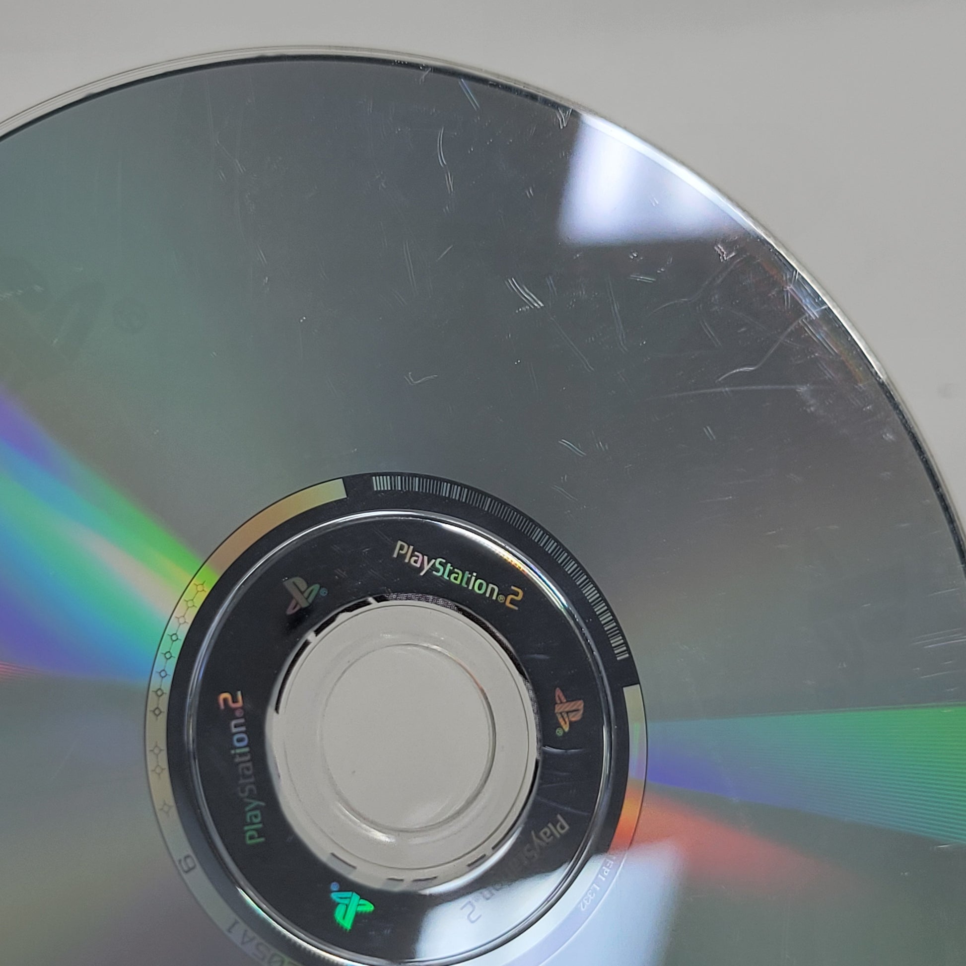 The top label is in good condition with light wear, and there are no areas where the label is worn through. The disc underside shows moderate to heavy scratching, including some semi-deep or long scratches, but the game has been tested and works despite this. The case is in acceptable condition with noticeable scratches, small stains, small rips, major creases, and other signs of wear.